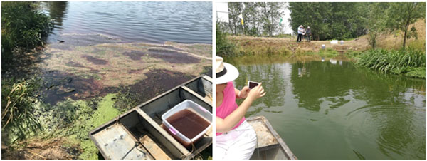 2017年5月11日南京蓋亞生物工程有限公司聯(lián)合成都大開應(yīng)用技術(shù)研究所采用RhP體系技術(shù),針對船塘水體黑臭開展應(yīng)急治理,歷經(jīng)近兩個(gè)月時(shí)間,船塘水質(zhì)已發(fā)生明顯變化:水體黑臭得以消除,尤其因工業(yè)污染產(chǎn)生的刺鼻性氣味已基本消除,水體透明度提升至40cm,水體富營養(yǎng)化程度大幅降低,水生態(tài)環(huán)境初步建立,食物鏈得以完善,水體中藻類種群發(fā)生改善,大量有益藻類和浮游動(dòng)物開始生長,水色已轉(zhuǎn)變?yōu)榈G色。