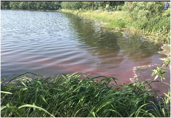 6月14日,治理一月后,水體藻體大量生長,水體刺鼻性氣味消除,水體黑臭得到改善,耐污能力較強(qiáng)的藍(lán)藻呈小規(guī)模暴發(fā)態(tài)勢。