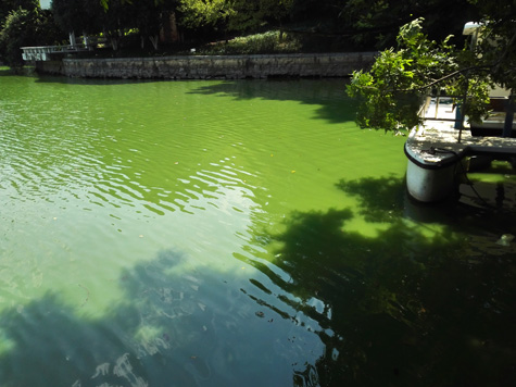 銀河公園水質(zhì)監(jiān)測(cè)指標(biāo)為地表水劣V類,耐污力很強(qiáng)的藍(lán)藻肆意生長(zhǎng),連續(xù)多年藍(lán)藻爆發(fā)成害,水體伴有異臭味,呈現(xiàn)嚴(yán)重富營(yíng)養(yǎng)化狀況。