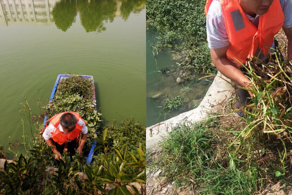 1、雜草清理:6月初對(duì)塘內(nèi)的雜草進(jìn)行了全面清理;