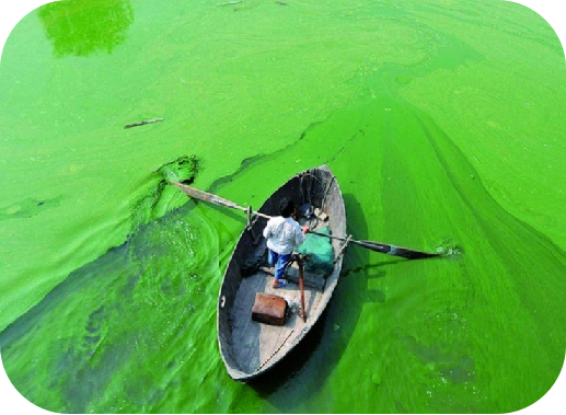 ? ? ? ? ? ? ? ? ? -藍(lán)藻(藍(lán)細(xì)菌)是“制氧菌”,喜歡靠陽(yáng)光和水里的無(wú)機(jī)鹽(像化肥)瘋狂繁殖,形成水華。
