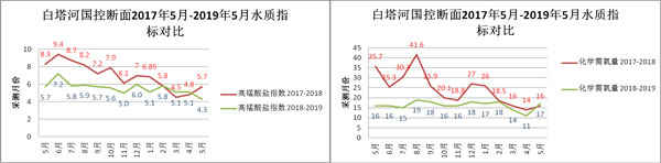 6.2017年5月---2018年5月主要水質(zhì)指標(biāo)均值全部達(dá)到地表水Ⅲ類水質(zhì)標(biāo)準(zhǔn),與2017年—2018年同期相比大幅提升,提前達(dá)到2020年白塔河國控?cái)嗝嫠|(zhì)要求。