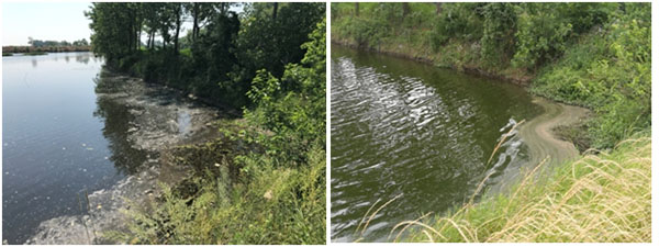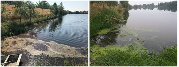 6月14日,治理一月后,水體藻體大量生長,水體刺鼻性氣味消除,水體黑臭得到改善,耐污能力較強(qiáng)的藍(lán)藻呈小規(guī)模暴發(fā)態(tài)勢。