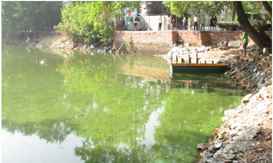 近年來,隨著污染的長期累積,西河水體逐漸不堪重負,富營養(yǎng)化嚴重,水質(zhì)呈劣V類,水域的自然生態(tài)系統(tǒng)、生物多樣性和良性的食物鏈遭到破壞,耐污能力很強的藍藻肆意生長,而藍藻因表面被包裹膠狀的多糖類物質(zhì)難以被魚類攝食,不能形成食物鏈,于是藍藻爆發(fā)成害,水體伴有異味。