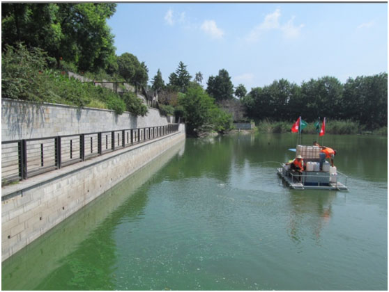 護城河東河藍藻持續(xù)生長爆發(fā),大量藍藻聚積在西河入口,隨水而下流入西河,加劇西河藍藻水華形成,對西河水域造成藍藻反復富集現(xiàn)象。