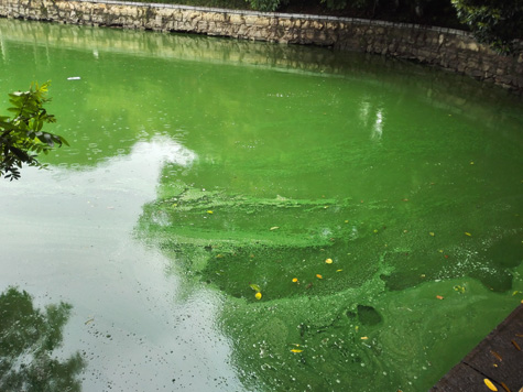 銀河公園水質(zhì)監(jiān)測(cè)指標(biāo)為地表水劣V類,耐污力很強(qiáng)的藍(lán)藻肆意生長(zhǎng),連續(xù)多年藍(lán)藻爆發(fā)成害,水體伴有異臭味,呈現(xiàn)嚴(yán)重富營(yíng)養(yǎng)化狀況。